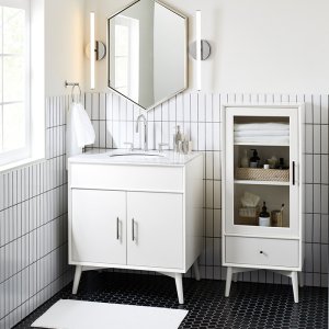 West Elm Bathroom Vanity : A Modern Hex Tile Bathroom Remodel Gets Creative : West elm's bedding includes duvets, sheet sets, pillows and more.. Bathroom light fixtures + vanity lighting vanity mirrors + medicine cabinets. West elm offers modern furniture, home accessories and decor featuring inspiring designs & colours. Find chic bedding and bedding collections in a range of styles and colors. Bring a stylish addition to your bathroom decor with west elm's collection of bathroom and vanity lights. Shop our online selections or visit our stores in the united kingdom.